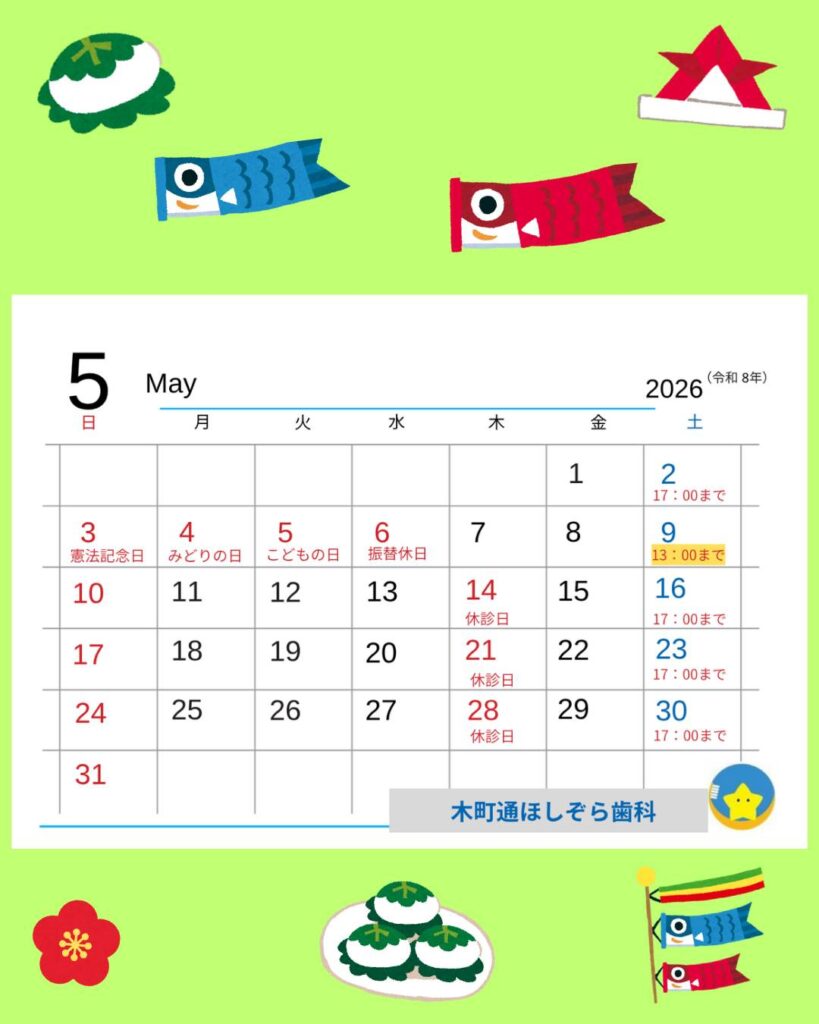 また、5月9日(土)は都合により13時までの診療となります。